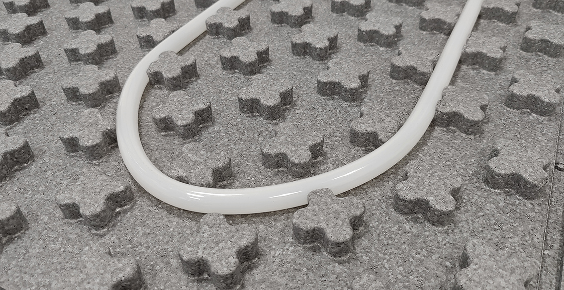 Disponibile negli spessori 15, 24 e 34 mm, alloggia la tubazione RDZ Tech PE-Xa Ø 17 mm in polietilene reticolato ad alta densità dotata di barriera anti-ossigeno prodotta in conformità alle normative DIN 4726 e DIN 16892. L’impiego di una tubazione con diametro 17 mm, permette di ridurre il numero di attacchi e servire ampie superfici con un solo collettore, velocizzando l’installazione e favorendo l’abbattimento dei costi.