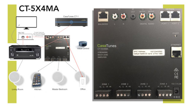 Si chiama CT-5X4MA ed è la nuova matrice amplificata entry level di CasaTunes, che va a sostituire la versione precedente (CT-4X4MA), migliorandone le funzionalità. Pur mantenendo le peculiarità e la versatilità della precedente, la CT-5X4MA aggiunge un ingresso ottico Toslink, aumentando da 4 a 5 il numero totale di sorgenti in ingresso.