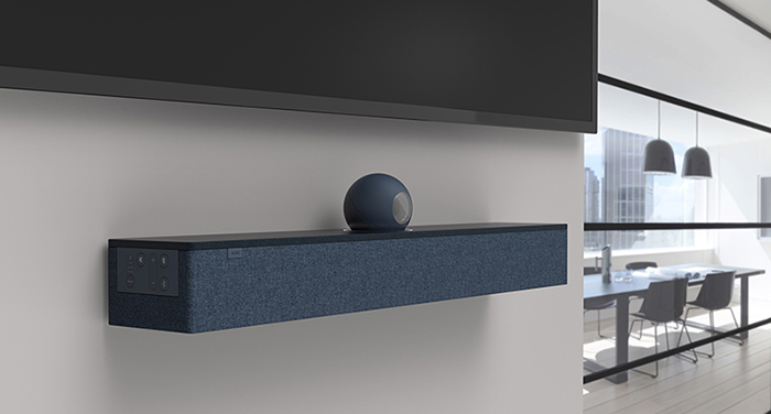 La prima soluzione completa per l’inserimento di una soundbar progettata appositamente per le esigenze e l’eleganza di un moderno spazio di lavoro. I robusti altoparlanti e microfoni JBL offrono un’esperienza audio notevole, una telecamera a grandangolo cattura tutti nello spazio e le funzionalità professionali come il controllo del display CEC; la connettività USB e Bluetooth, poi, garantiscono un’esperienza ottimizzata.