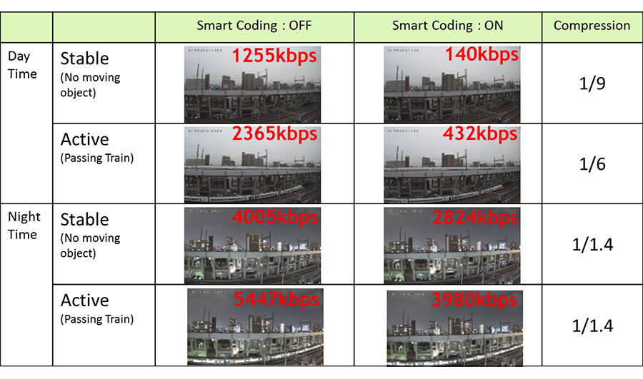 Infine, il nuovo algoritmo di analisi delle ROI (Region of Interest) con encoding (Auto VIQS) rileva il movimento nell’immagine e comprime le aree più statiche al fine di ridurre il volume di dati trasmessi, pur mantenendo inalterata la qualità dell’immagine